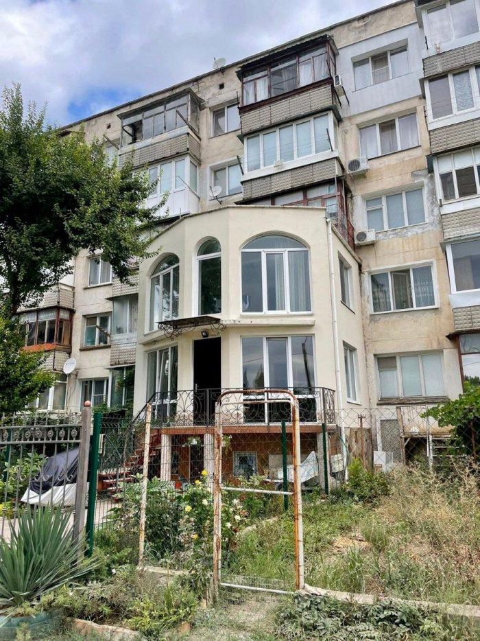 Ну разве не шик? Купили две квартиры, одна над другой. Но внутри лестницу не построишь – перекрытия трогать нельзя. Окей, прилепили пристройку снаружи, добавив лестницу и несколько комнат. Обратите внимание, получилось сделать ещё и полуподвальный этаж, а также отжать себе и огородить забором часть территории у дома, которая стала личным двориком.