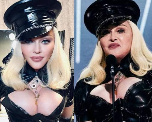 В Нью-Йорке отгремела музыкальная премия MTV Video Music Awards, которая не обошлась без королевы поп-музыки. 65-летняя Мадонна поделилась фото с церемонии, где предстала в откровенном образе: колготках в сетку, чёрном боди, перчатках и кепке из кожи и латекса. При этом декольте и лицо артистки выглядели просто идеально: ни одного пятнышка, морщинки или растяжки.
