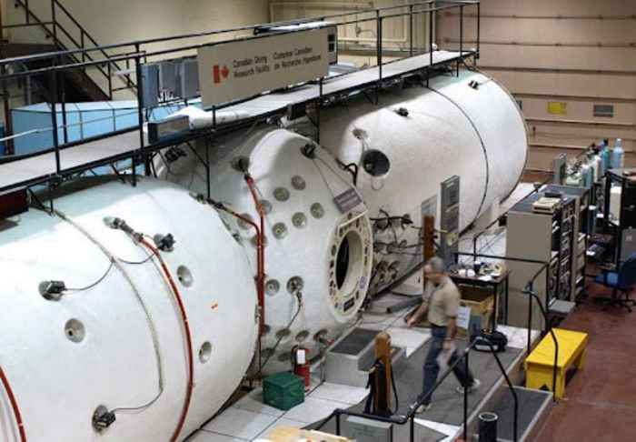 Для погружения на глубину 100 метров, требуется 50 часов декомпрессии. В наши дни ее проводят в специальных кессонных камерах с постепенно понижающимся давлением. При погружении с насыщением водолазы погружаются под воду на несколько недель. Они выполняют поставленные перед ними задачи, а отдыхают в специальных подводных камерах с повышенным давлением.