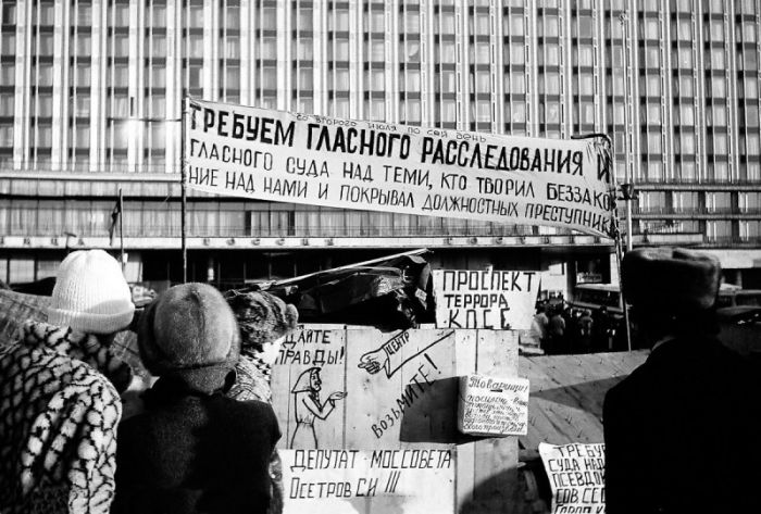 Особо непонятно было, кому именно выдвигать претензии. Властям? А кто они, эти власти? "Всесильная" КПСС уже, фактически, была разгромлена. Горбачев считался "хромой уткой" без реальных полномочий, Бориса Ельцина изберут президентом лишь в июне 1991 года.