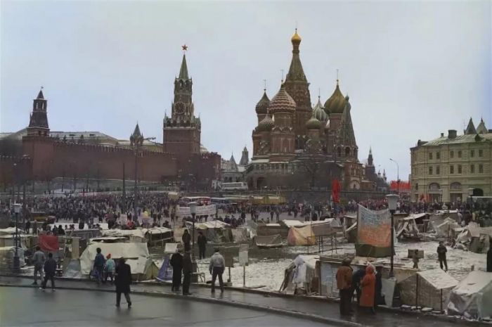 Городские власти не давали разрешения на установку палаток на Васильевском спуске, однако, самое начало 90-х было весьма специфическим временем, которое по уровню свободы и народной вольницы даст той же Украине сто очков вперед.