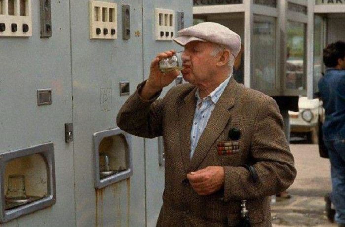 16 апреля 1937 года в столовой Смольного был установлен первый аппарат с газированной водой. Это можно считать по-настоящем историческим событием. Дальше — больше. Автоматы стали появляться в Москве, а затем и по всему Союзу. Просто газированная вода стоила одну копейку, газированная вода с сиропом продавалась за три копейки. Стаканчики были многоразовыми, они просто полоскались струей воды, что было далеко от нынешних гигиенических стандартов.