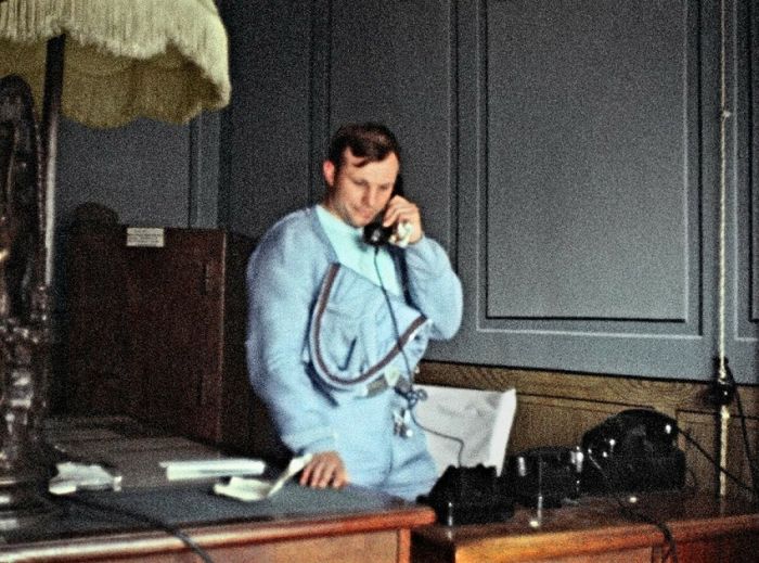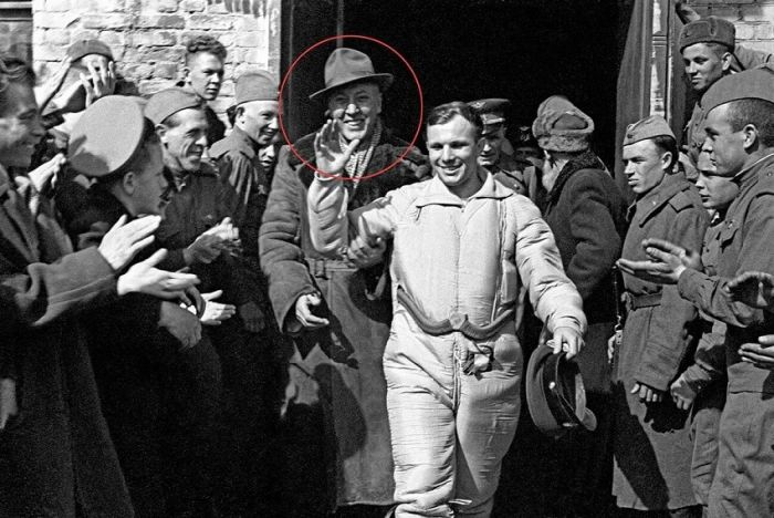 Находясь перед членами государственной комиссии после своего легендарного полета Юрий Гагарин, первый человек в космосе, не забыл уточнить одну очень важную деталь: «Я там на радостях сфотографировался пару раз. К этому времени я уже снял оболочку скафандра. На мне была только голубая тепловая одежда, а в оранжевой и серой оболочке и в гермошлеме я не фотографировался. Скафандр мы положили в машину».