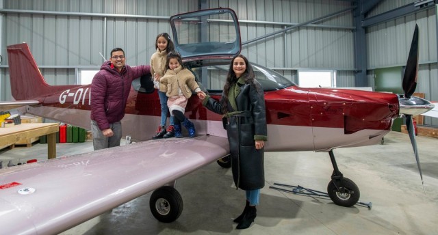 Эта семья из Великобритании провела два года, строя свой собственный самолет — в своем садовом сарае. Ашок Алисерил, 38 лет, его жена Абхилаша Дубей, 35 лет, шестилетняя Тара и трехлетняя Дия не могут дождаться первого полета после завершения 1500-часового проекта стоимостью 140 000 фунтов стерлингов.