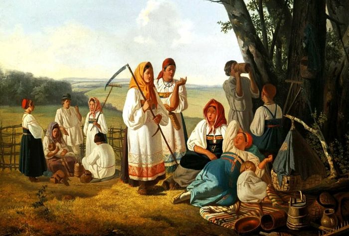 Основной пищей среднестатистического человека являлся ржаной хлеб. Также ели ячменную, полбяную, овсяную и гречишную каши. Из пшеничной муки готовились пышки, оладьи, шаныги, калачи, бублики, баранки и всевозможные пироги. На Руси любой суп звался ухой, а со временем начал именоваться щами. Основу щей составляла кислая рубленая капуста. Остальная начинка зависела от дня – постного или же скоромного. Были щи со сметаной, рыбой, салом и другими ингредиентами. Для обычного человека мясо считалось роскошью и поэтому ели его крайне редко, на праздники. Богатые хозяйства могли похвастаться мясом птицы, яйцами.