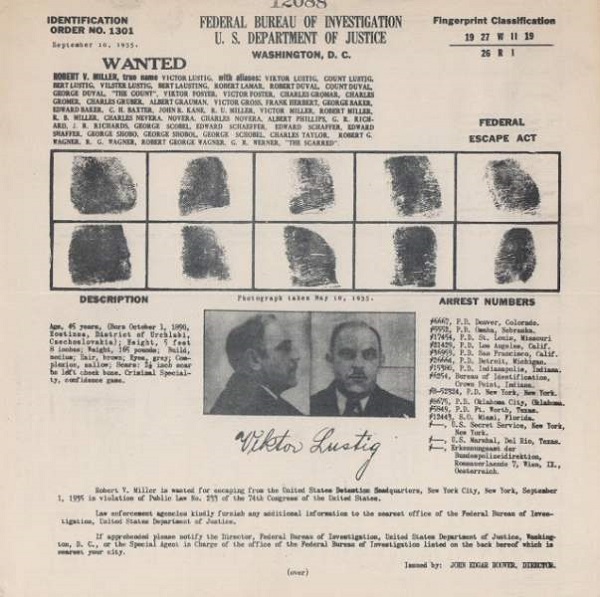 Виктор Люстиг считается одним из самых умелых и знаменитых мошенников мира. Его арестовывали около 50 раз и каждый раз отпускали за неимением улик. Он был своего рода перфекционистом в своих коварных обманах, обладал отличной памятью и тонко чувствовал человеческую натуру.
