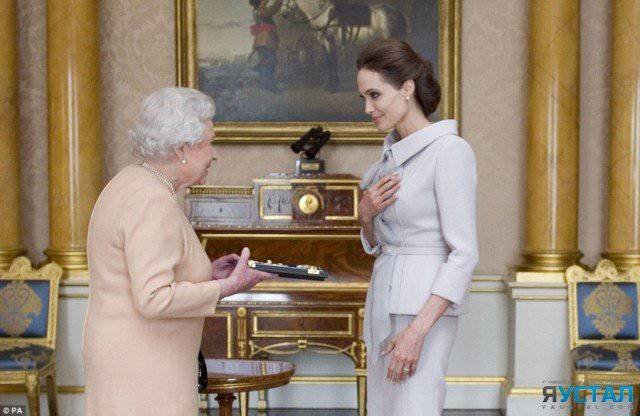 Букингемском дворце британская королева Елизавета встретилась с голливудской актрисой Анджолиной Джоли. В ходе встречи, Ее Величество наградила актрису орденом кавалерственной дамы за ее активную деятельность в борьбе против сексуального насилия в зонах военных конфликтов.