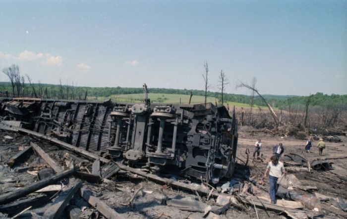 Через год, в 1989-м, произошла одна из самых страшных железнодорожных катастроф в истории СССР. В Башкирии, недалеко от Уфы, в опасной близости от путей проходил нефтепровод «Западная Сибирь — Урал — Поволжье», перепрофилированный в продуктопровод. По нему транспортировали сжиженный газ, который в результате утечек скопился в низине. В момент, когда на перегоне расходились два поезда (то, что их было два, только увеличило количество жертв), газ взорвался. В той катастрофе погибло около 600 человек и примерно столько же было ранено.