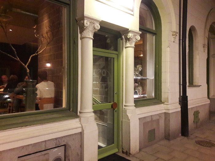 Пришли в ресторан минут за 15, не стали заморачиваться с одеждой, я был вообще в свитере и джинсах, да и сам ресторан был не пафосный…стиль что-то вроде лофта. Фото ресторана снаружи.