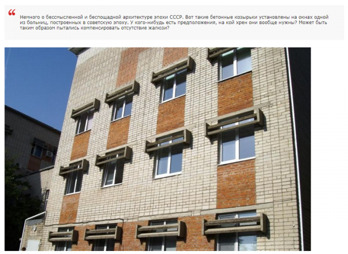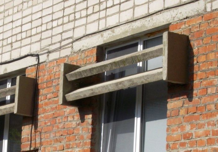 Это ламеллярные козырьки, которые вот так конструктивно устанавливались на административных зданиях, в больницах и школах.