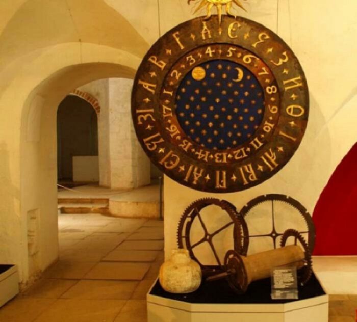 Все это было не слишком-то удобно. А потому в 1704 году Петр I заказал в Амстердаме новые «европейские» часы с вращающимися стрелками. Хотя куранты неоднократно горели, отреставрированный старинный циферблат на 17 часов сохранился, и сегодня его можно увидеть в Александрове в Палатах Ивана Васильевича. Многих также наверняка заинтересуют загадочные буквы, нанесенные на нем над арабскими цифрами. На самом деле ничего таинственного в них нет. Это старославянские цифры, которые обозначались буквами. В буквах «зашифрованы» все те же значения от 1 до 17.