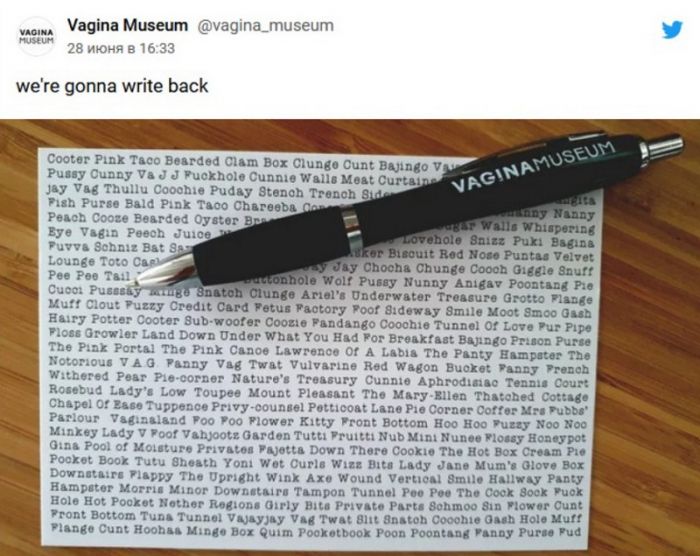 Лондонский музей вагин обнародовал в своем официальном аккаунте открытку, полученную из Исландии от музея пенисов в Рейкьявике.
