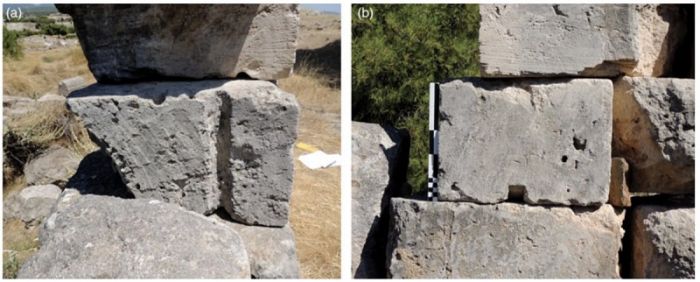 В статье, опубликованной в журнале Annual of the British School at Athens, он описывает другую технологию подъема, которая, судя по найденным на камням отметинам, могла использоваться древнегреческими мастерами еще с середины VII века до нашей эры. Ученый интерпретирует эти отметины как углубления для тросов, рычагов и деревянных катков. С их помощью тяжелые плиты укладывались одна на другую, после чего веревки можно было вытянуть.