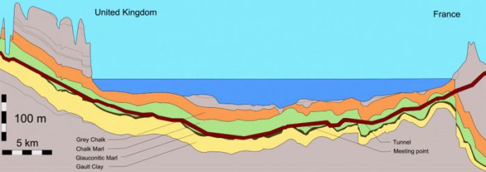 Проходка велась сразу с двух сторон. Из французского Кале и английского Фолкстона. Специальными буровыми машинами (проходческими щитами) бурились три туннеля: два железнодорожных и один технический. Буровые машины под землей наводились по лазерному лучу. А маршрут тоннеля был проложен из космоса, с помощью высокоточного спутникового оборудования.