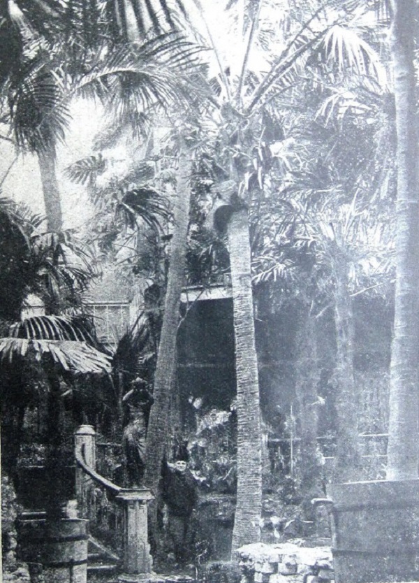 По сути те, кто заезжал откушать в «Стрельну», попадали в огромные тропики. Зимний сад прославился на весь город семиметровыми пальмами. В. А. Гиляровский, например, называл их столетними. По словам самого владельца ресторана, растения привезли с острова Борнео. Сейчас там находится сразу три государства: Индонезия, Бруней и Малайзия. Хотя некоторые люди, Натрускину не поверили. Они утверждали, что пальмы выкопали в окрестных оранжереях. Да и вообще ничего симпатичного в этом интерьере нет.