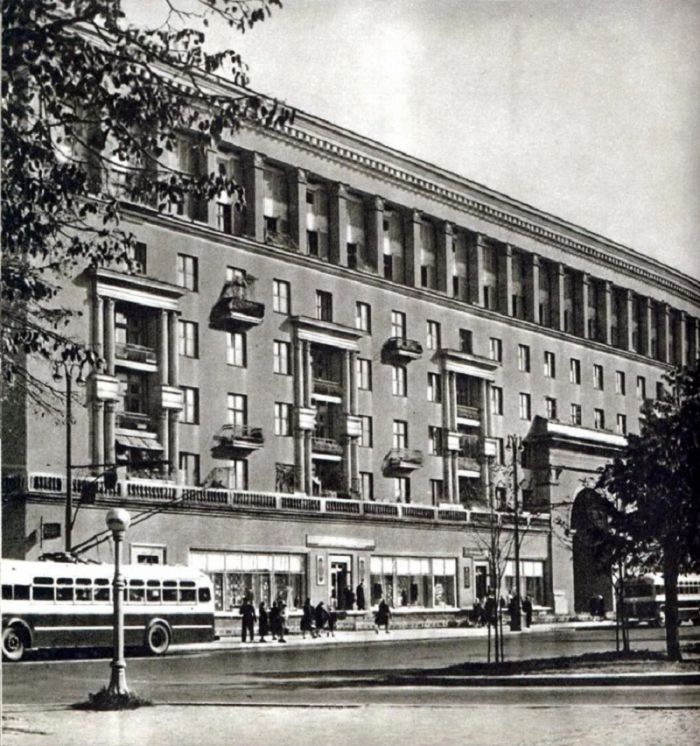 На месте ресторана в 1937 году построили жилой дом (сейчас Ленинградский проспект, 44). Фото 1956 года.