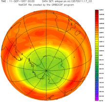 GIF-анимация показывает изменения озоновой дыры за период с 1957 года