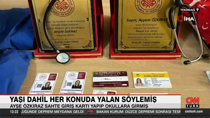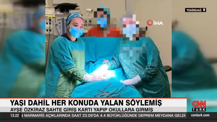 При обыске съемной квартиры Айше Озкираз полиция обнаружила несколько поддельных удостоверений личности из нескольких больниц Турции, поддельные документы и медицинскую форму. Девушка была арестована и в конце концов призналась, что более года выдавала себя за медика.