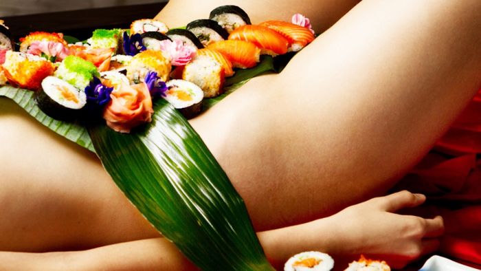 Еще одна традиция называется Ниотаймори. Это очень странная для нас традиция, когда девушки в обнаженном виде и покрытые суши и сашими, присутствуют на светских приемах, в дорогих ресторанах. Пик популярности этой традиции был в США в конце девяностых. Ниотаймори считается не только красивым зрелищем. Ведь тело женщины может нагреть суши и поддерживать температуру этого блюда на той отметке, которая наиболее подходит для переваривания организмом.
