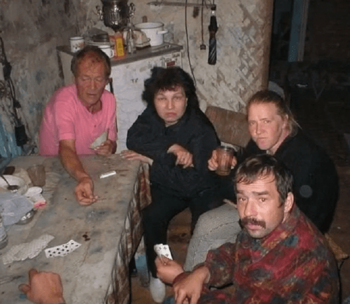 Там и собираются все зависимые, употребляя спиртное. Все остальные комнаты предназначаются для отдыха. Зачастую, там где упал, там и заснул. На кухне находится стол, за которым и собираются алкоголики. Вокруг него наставлено множество разных табуретов, стульев и даже кресел. Кто сидит, кто стоит, кто корячится на корточках.