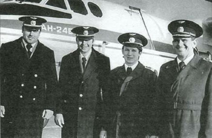 Экипаж того рейса, слева направо: второй пилот Николай Лысенко, штурман Александр Курдюков, бортинженер Павел Рядченко, КВС Игорь Сагатый