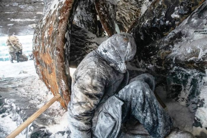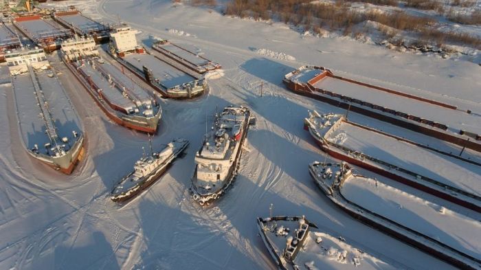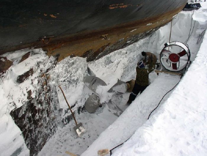 Ленское пароходство вмораживает осенью суда в лед и нанимает работников, которые вырезают под днищем кораблей многометровые тоннели, чтобы сделать ремонт или заменить винт. Их называют выморозчиками.