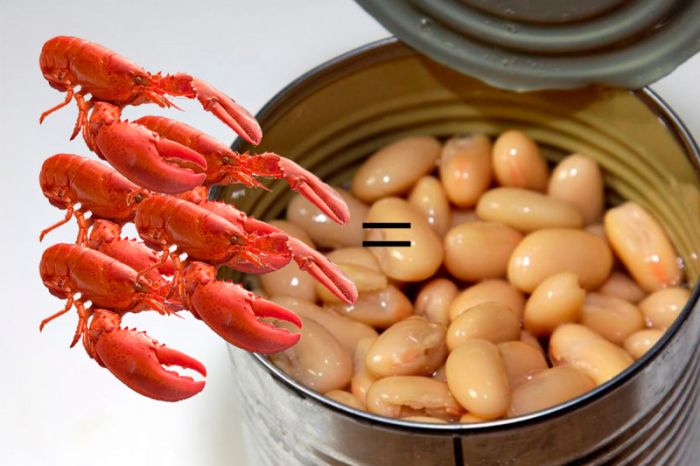 Цена омаров была невелика. Для примера можно привести обычную фасоль. Одна банка бобовых стоила в 5 раз дороже морских обитателей.