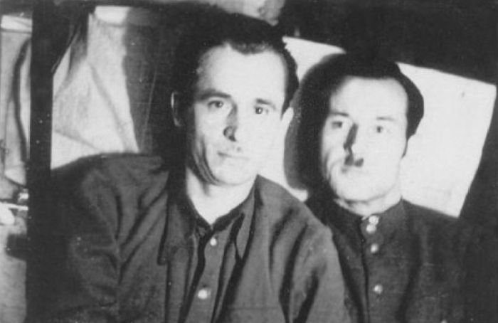 Николай Козак (слева) с проводником Луцкого округа Михаилом Бондарчуком (справа). Конец 1940-х гг.