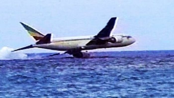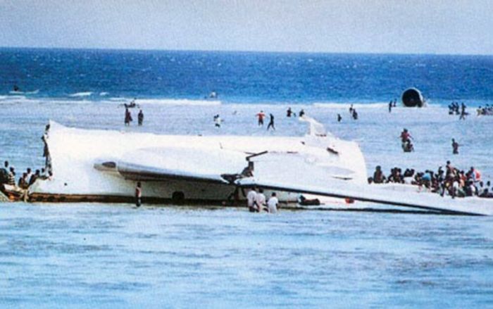 Самолёт находился на высоте 45 метров на водой и летел на скорости 370 км/ч, когда угонщики наконец покинули кабину. Перед самым касанием Боинг накренился влево, коснулся воды левым крылом и зачерпнул воду левым двигателем. Из-за высокой скорости лайнер сильно развернуло влево, он жёстко ударился о поверхность, перевернулся, разрушился на четыре части и ушёл под воду.