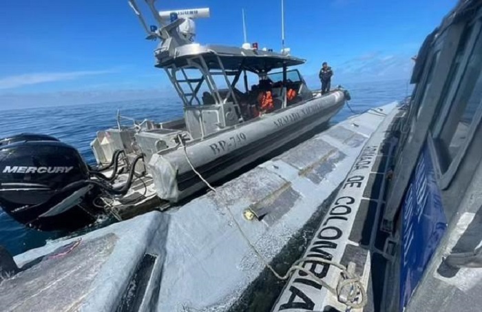 В Тихом океане моряки Национальных военно-морских сил Колумбии выловили 14-метровую подводную лодку.
