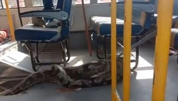 Водитель автобуса в Азии использовал WD-40, чтобы удалить питона, который обвился вокруг ходовой части его автобуса.