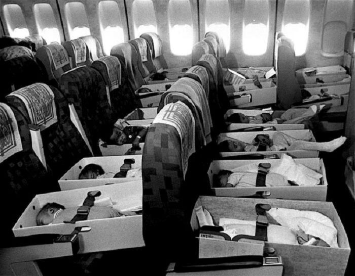 Еще одна сопровождавшая «ценный груз» стюардесса вспоминала, как детей прятали в картонные коробки, установленные на сидения и просто под ними. В ходе полёта члены экипажа следили за ползающими в проходах карапузами, а в темное время суток с фонариками проверяли, дышат ли младенцы. Одна из медсестер на борту, направлявшемся в Сиэтл, говорила, что была поражена наполненным детьми салоном. Малыши были везде, и 30-часовой полет показался ей вечностью.