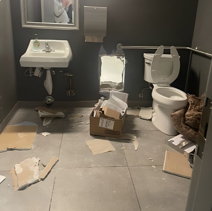Хозяин магазина экспресс-машин пожаловался, что ремонт стены обойдётся ему в 2000 долларов и вообще он был не в курсе, что его туалет находится так близко с соседним магазином. Ну а полиция до сих пор чешет затылки и рассматривает все версии.