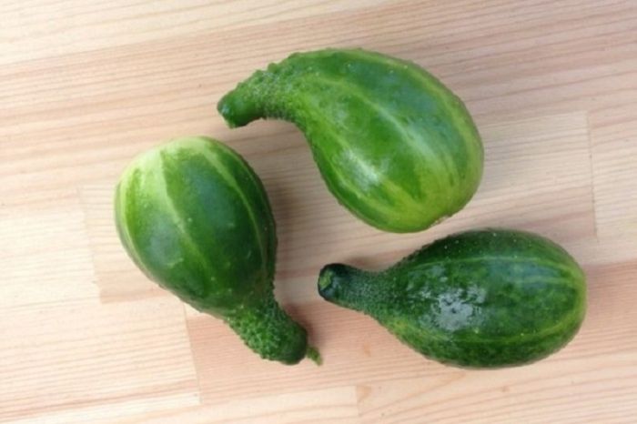 Многие наверняка встречали и плод, похожий на «клюв». Такая «мутация» говорит о недостатке азота. Специалисты рекомендуют использовать настой коровяка (в соотношении 1:10) в качестве подкормки. Также неплохим вариантом для профилактики послужит птичий помёт (в соотношении 1:20). Помимо всего этого можно использовать селитру или мочевину, следуя рекомендациям на упаковке.