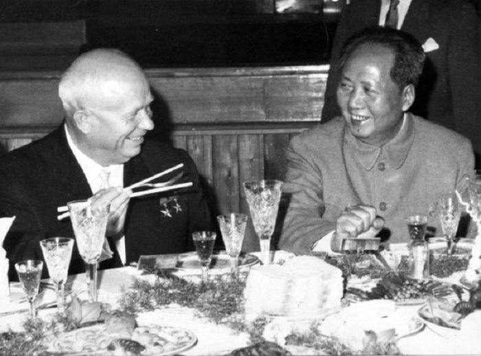 К середине 50-х стратегия Мао Цзэдуна резко изменилась. До этого периода он учтиво благодарил СССР за любую помощь и малейшую поддержку. Теперь же он требовал. В частности, китайский лидер настаивал на форсировании передачи атомных технологий КНР. Хрущёв сначала пошёл навстречу, но быстро притормозил процесс, побаиваясь усиления Китая и выхода коварного Мао из-под колпака. Вторым номером китайский лидер запросил создание атомного подводного флота, что называется «под ключ», причем при условии полного китайского управления. Кремль на такое пойти, конечно же, не мог. Кроме этого, Мао пожелал завладеть Монголией и неоднократно ставил этот вопрос на обсуждение. Но Монголия продолжала оставаться в зоне советского влияния.