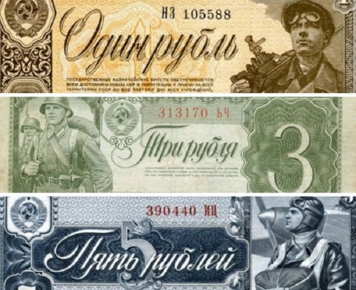 1. Червонцы и рубли, выпущенные с 1937 по 1938 года. На червонцах красовался сам Ленин, а на рублях были летчик, красноармеец и шахтер. Трехрублевая купюра была с пехотинцем. А на пятирублевке, по задумке художника, должна была быть женщина. Но потом решили оставить мужчину летчика.