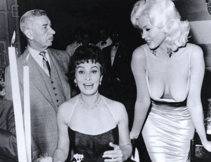 Спустя 57 лет Софи Лорен наконец-то расскажет, что она чувствовала на той памятной апрельской встрече. В 1957 прекрасная сеньорита только начинала заокеанскую карьеру, и Paramount организовали в ее честь вечеринку. Последней заявилась Джейн Мэнсфилд, уже получившая "Золотой глобус".