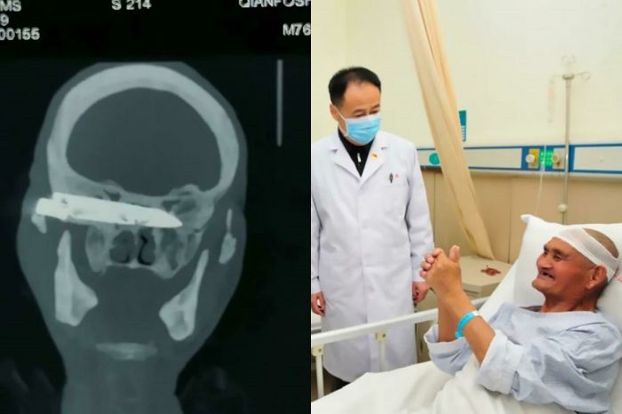 76-летний китайский фермер 26 лет проходил с лезвием ножа в голове. Лезвие было длиной в 10 см, но каким-то невероятным образом не задело никаких важных частей мозга и кровеносные сосуды.