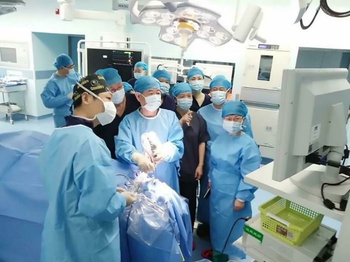 Во время обследования выяснилось, что лезвие ножа передавливает глазной нерв, поэтому правый глаз и перестал видеть. При этом удалить его из черепа действительно было очень сложно, но это не остановило главного нейрохирурга клиники доктора Лю Гуанцюня.