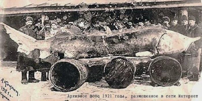 Ещë в 1920-е у нас на Волге ловили настоящих монстров. Сеть буквально пестрит фотографиями огромных белуг, распростëртых у ног гордо позирующих рыбаков.