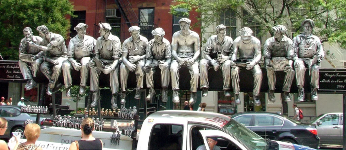 Фото сие оказалось столь популярно, что его американцы даже увековечили в скульптуре. В качестве памятника всем бесстрашным строителям небоскрёбов.