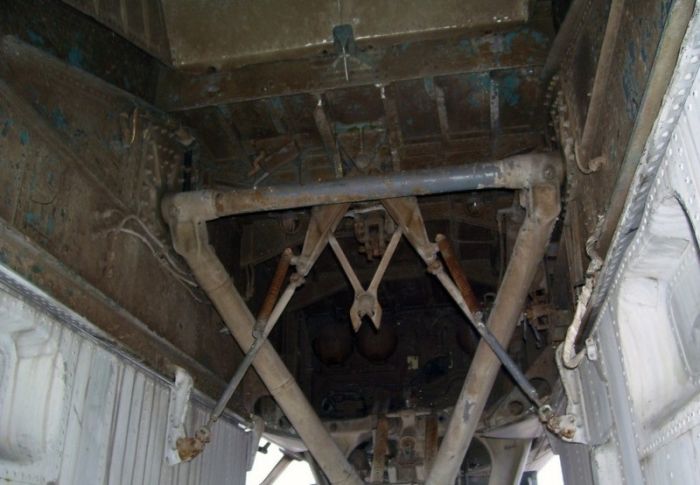 Это сейчас кондиционирование установлено другое, а тогда от компрессора двигателя отходил воздуховод-патрубок с горячими газами. Вот именно они и нагревал спрятанный рядом с отсеком для уборки носовых шасси бак на 400 л. Причём в баке этом была обычная водка.