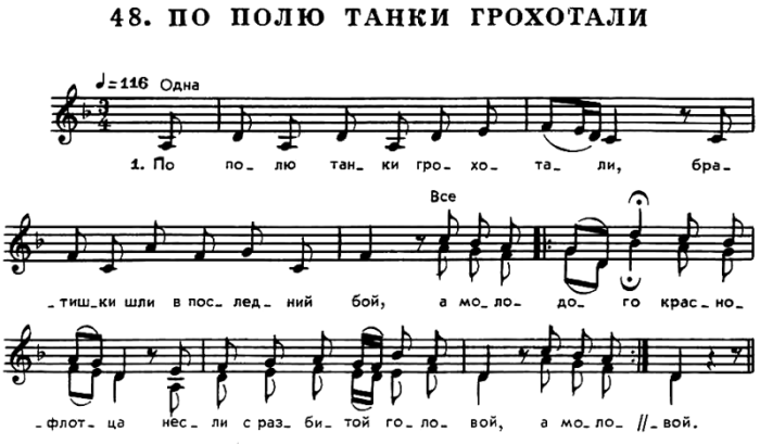 Наверное, нет в России человека, который хоть раз не слышал бы песню, начинающуюся словами «На поле танки грохотали…». Несложная, но берущая за душу мелодия, проникновенный текст и медленный, распевный ритм сделали её одной из любимых военных, да и, чего уж греха таить, застольных песен.