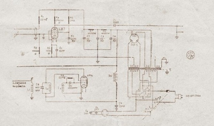 Принципиальная схема аппарата «Говорящая бумага», сохранившаяся в запасниках Краеведческого музея Коломны.