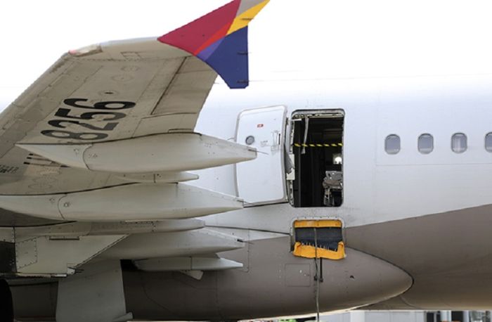 В небе над южнокорейским городом Тэгу произошел жуткий инцидент на борту самолета. Дверь лайнера открылась в воздухе, когда один из пассажиров схватился за рычаг аварийного выхода.