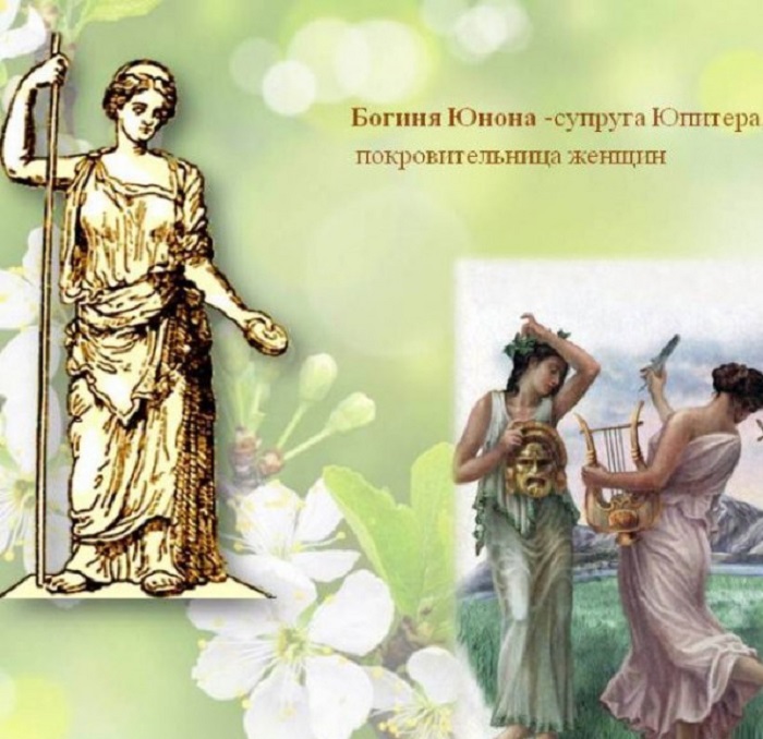 Июнь (Junius) - имеет прямое отношение к богине Юноне, жены Юпитера, которая покровительствовала женщинам. По другой версии, название этого летнего месяца связано с именем первого римского консула Юния Брута.