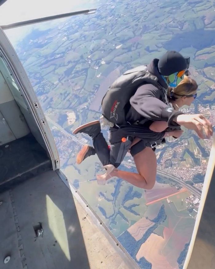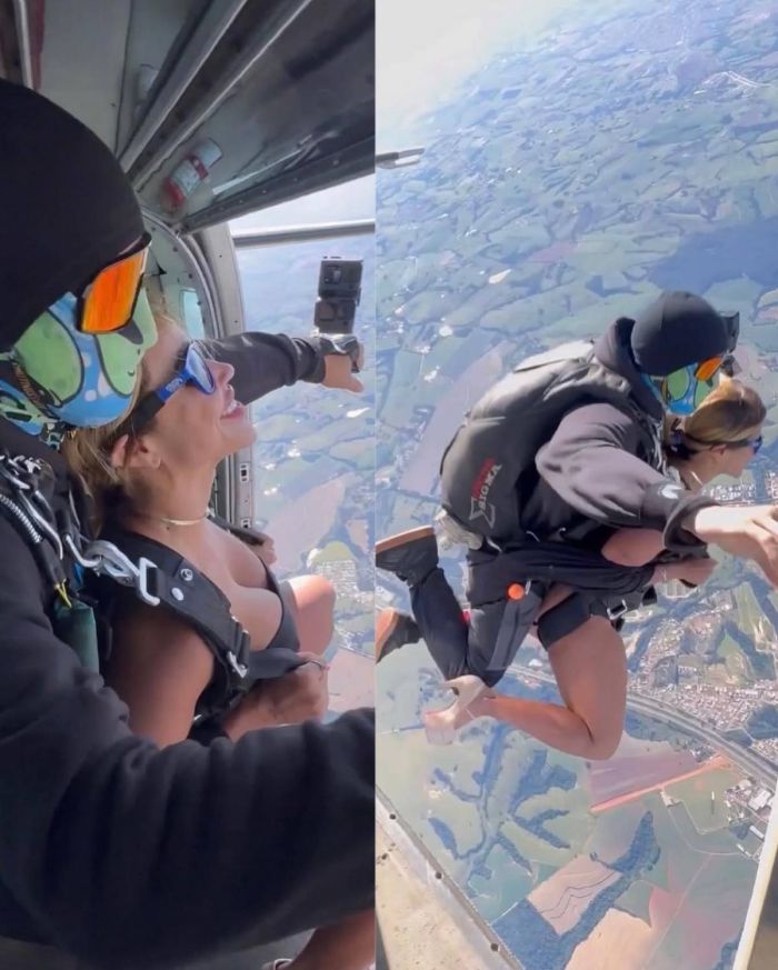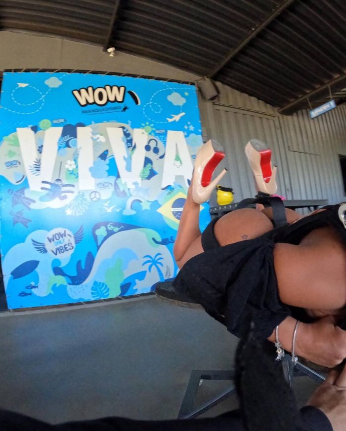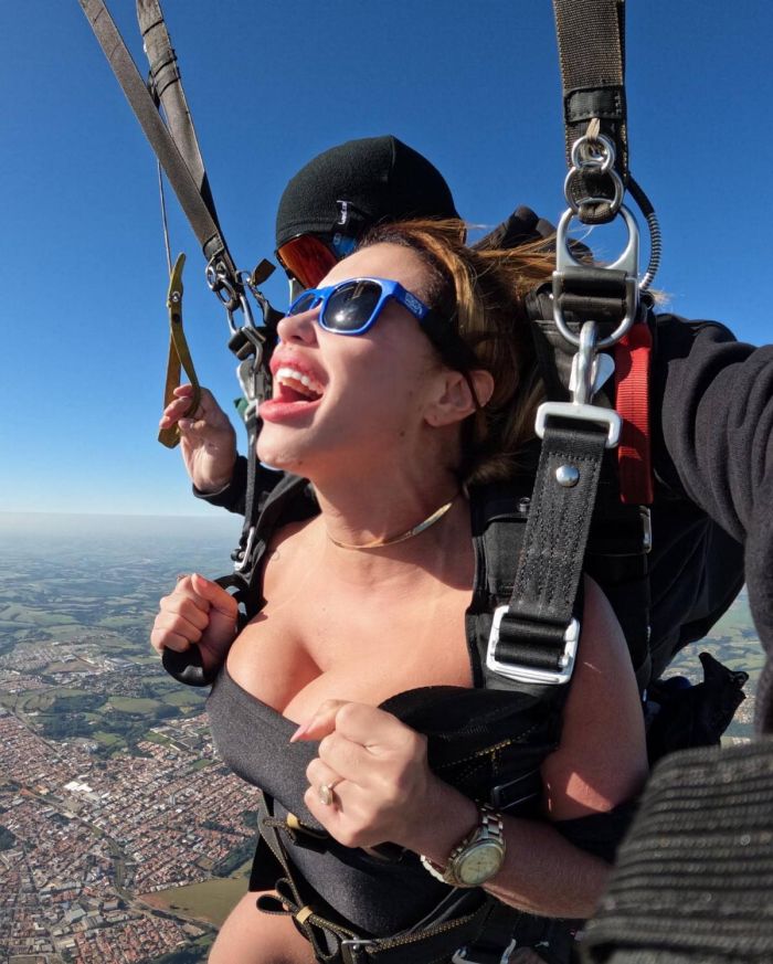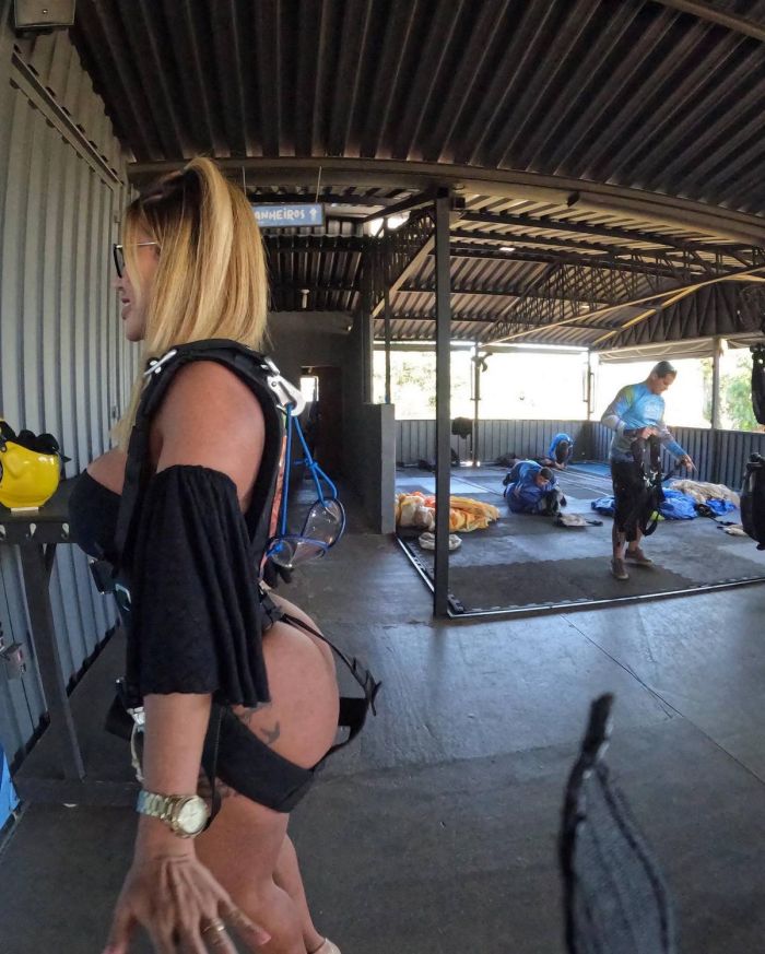 Модель OnlyFans и блогершу Крис Галеру из Бразилии в откровенном наряде обругали в очереди на прыжки с парашютом.