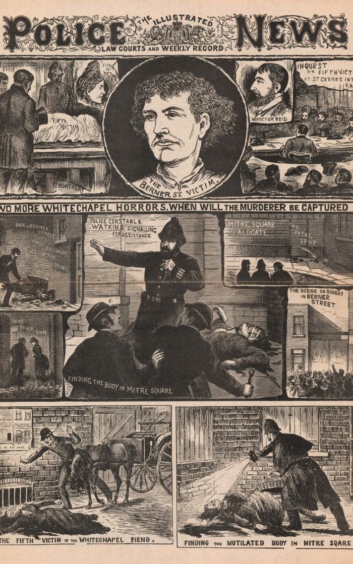 На первой странице иллюстрированных полицейских новостей 1888 года сообщается об убийствах