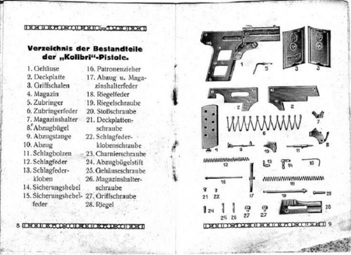 Самое маленькое серийное огнестрельное оружие на планете, пистолет Kolibri, было разработано, как это ни странно, часовщиком немецкого происхождения по имени Франц Пфаннль. По информации редакции Novate.ru, этих оружейных малюток было изготовлено приблизительно тысяча экземпляров.