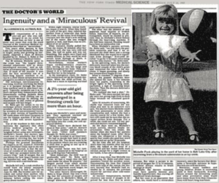 Медики посчитали, что главными факторами, поспособствовавшими чудесному спасению, стали холод, погрузивший организм в похожее на анабиоз состояние, и спазм гортани, из-за которого девочка не захлебнулась. Случай Мишель стал рекордным (66 минут под водой) и продемонстрировал, что человеческий организм удивителен и, несмотря на достижения медицины, ещё полон сюрпризов и загадок.